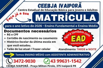 CEEBJA Ivaiporã abre matrículas para o 2º semestre de 2025