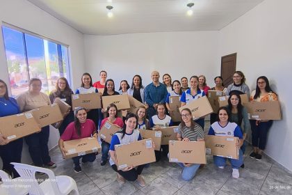Prefeito Corona entrega notebooks para professoras do município