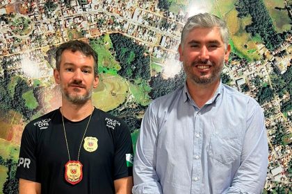 Prefeito de Cândido de Abreu recebe novo delegado da Polícia Civil em reunião institucional
