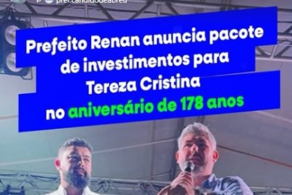 Prefeito Renan anuncia pacote de investimentos para Tereza Cristina no aniversário de 178 anos