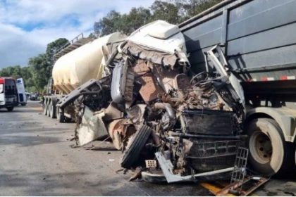 Acidente entre ônibus, carro e caminhões deixa quatro feridos na BR-277 no PR