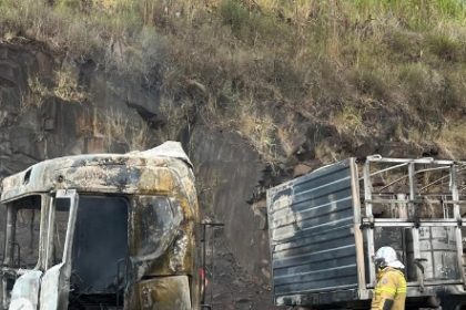 Carreta é destruída pelo fogo na BE-376 em Mandaguari