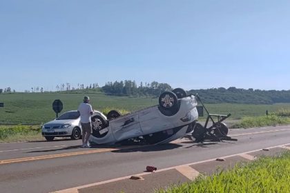 Morador de Borrazópolis capota veículo após colisão na Rodovia do Milho