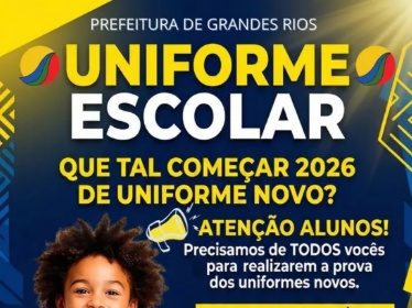 Prefeitura de Grandes Rios convoca alunos para prova dos novos uniformes escolares de 2026