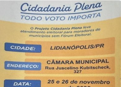 O programa Cidadania Plena – Todo Voto Importa, do TRE-PR, estará em Lidianópolis nos…