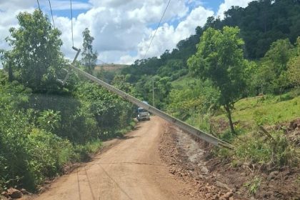 Poste inclinado preocupa moradores na Estrada da Flórida do Ivaí, em Grandes Rios