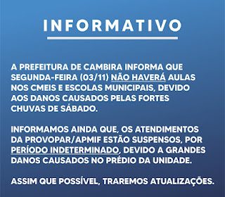 Aulas e outros serviços são suspensos após temporal em Cambira