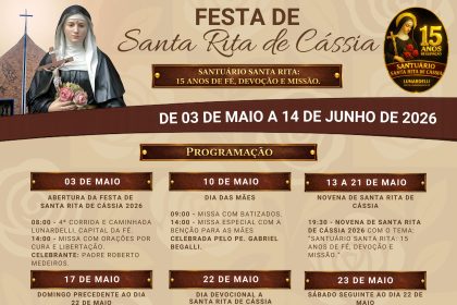 O Santuário Santa Rita de Cássia, em Lunardelli, já se prepara para…