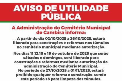 Aviso de Utilidade Pública – Cemitério Municipal de Cambira