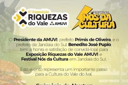 AMUVI convida para a Exposição Riquezas do Vale e Festival Nós da Cultura em Jandaia do Sul