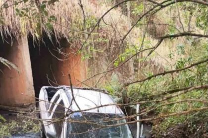Veículo cai em ponte após capotar na PR-487 em Manoel Ribas