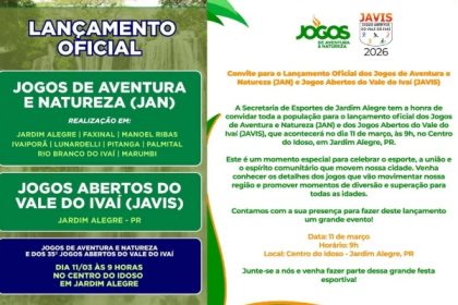 Jardim Alegre lança oficialmente os Jogos de Aventura e Natureza e os Jogos Abertos do Vale do Ivaí (Javi´s)