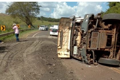 Na tarde desta quinta-feira (5), uma carreta carregada com cascalho tombou na…