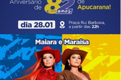 Milhares de pessoas são esperadas para cantar os parabéns com Maiara & Maraísa nos 82 anos de Apucarana