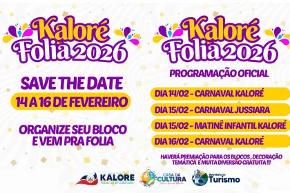 A Prefeitura de Kaloré divulgou a programação oficial do Kaloré Folia 2026,…
