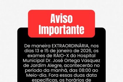 Hospital Municipal de Jardim Alegre terá alteração temporária no horário dos exames de Raio-X
