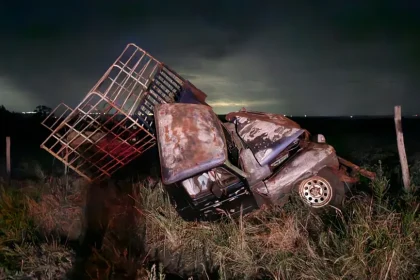 Uma caminhonete antiga modelo F-75 capotou na noite de sexta-feira (9) na…