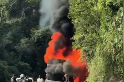 Motor-casa pega fogo na BR-376 em Ortigueira após estouro de pneu