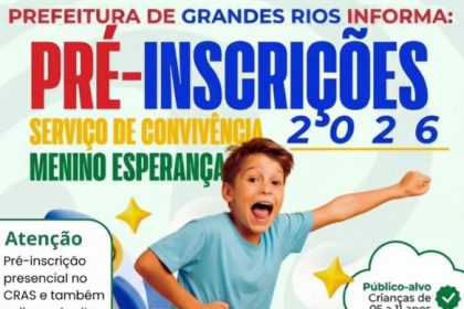 Prefeitura de Grandes Rios abre pré-inscrições para o Serviço de Convivência Menino Esperança 2026