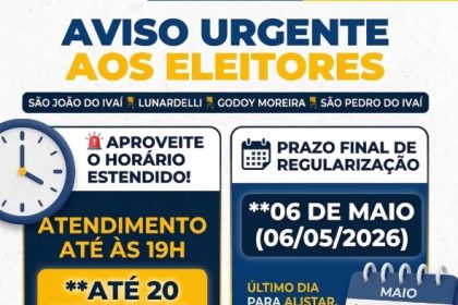 A 132ª Zona Eleitoral de São João do Ivaí divulgou um comunicado…