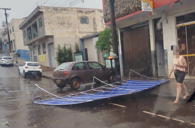 Na área central, o toldo da Agência dos Correios, localizada próximo à Praça da República, acabou desabando e gerou prejuízos. Em frente ao local, na obra de uma residência de Carlos Barion, uma porta metálica foi arrancada pela ventania.