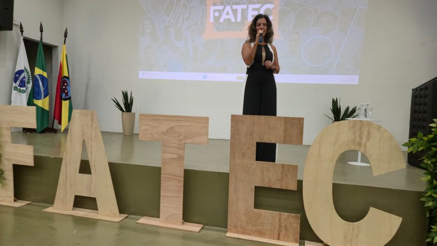 Pollyana Ferretti agradeceu à desembargadora por aceitar o convite da Fatec Ivaiporã e enfatizou o valor da troca entre quem ensina e quem está em processo de formação.