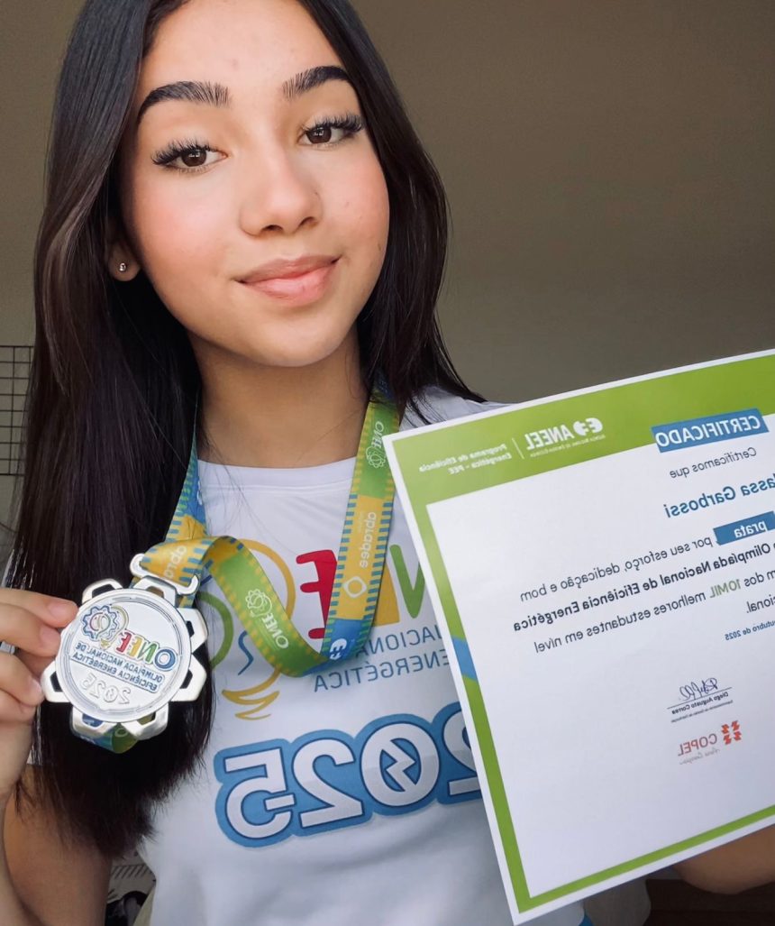 A estudante Hadassa Silva Garbossi, de apenas 13 anos, aluna do Colégio Estadual João Plath, conquistou a medalha de prata na ONEE – Olimpíada Nacional de Eficiência Energética, uma das competições educacionais mais importantes do país na área de sustentabilidade e uso consciente da energia.