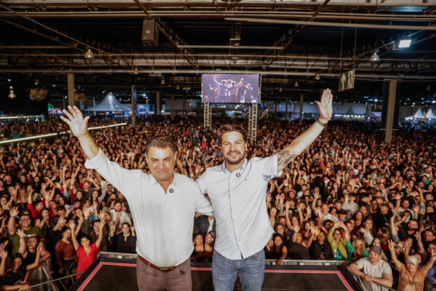 A ExpoArapongas 2025 começou nesta quinta-feira (09) com enorme sucesso. Uma verdadeira multidão compareceu no Centro de Eventos Expoara na primeira noite para visitar a Feira do Comércio e Serviços, a área gastronômica e, principalmente, cantar e dançar com Juan Marcus & Vinicius, Country Beat e Guilherme & Benuto. “Essa festa é feita para o trabalhador e sua família, porque são os trabalhadores que constroem Arapongas há 78 anos”, afirmou o prefeito Rafael Cita.