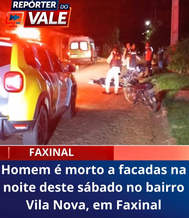 Um homem de 36 anos foi assassinado a facadas no final da noite deste sábado (14), no bairro Vila Nova, em Faxinal.