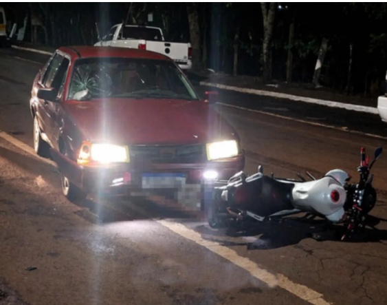 Uma motociclista ficou ferida após uma colisão envolvendo a moto que ela conduzia e um Volkswagen Santana. O acidente aconteceu na saída de Borrazópolis para Cruzmaltina, no início da noite desta terça-feira (28).