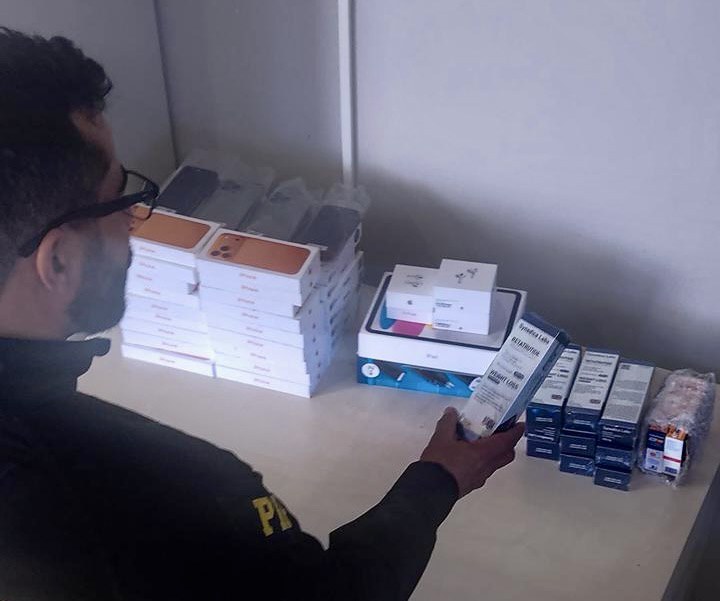 Polícia Rodoviária Federal (PRF), apreendeu, na manhã desta sexta (5), 20 unidades de medicamentos usados para o emagrecimento, além de 56 iPhones, na BR-369, em Campo Mourão, interior do Paraná.