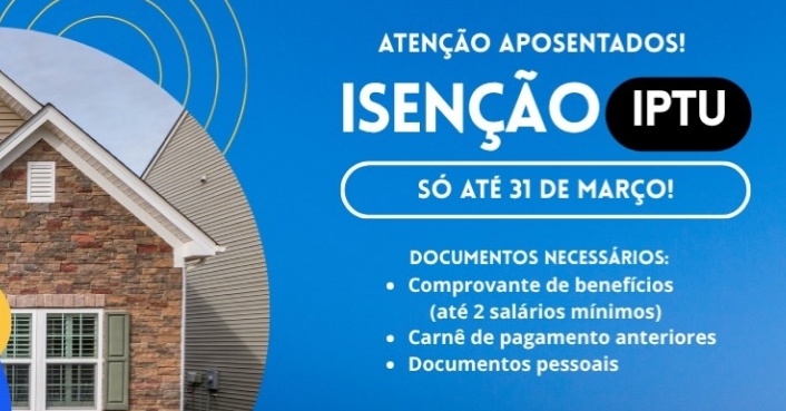 A Prefeitura de Borrazópolis comunica aos contribuintes aposentados ou pensionistas que possuem um único imóvel e nele resida e tenham renda igual ou inferior a 2 salários mínimos que o prazo para assinatura do requerimento de ISENÇÃO do IPTU/2026 vai até o dia 31 de Março.