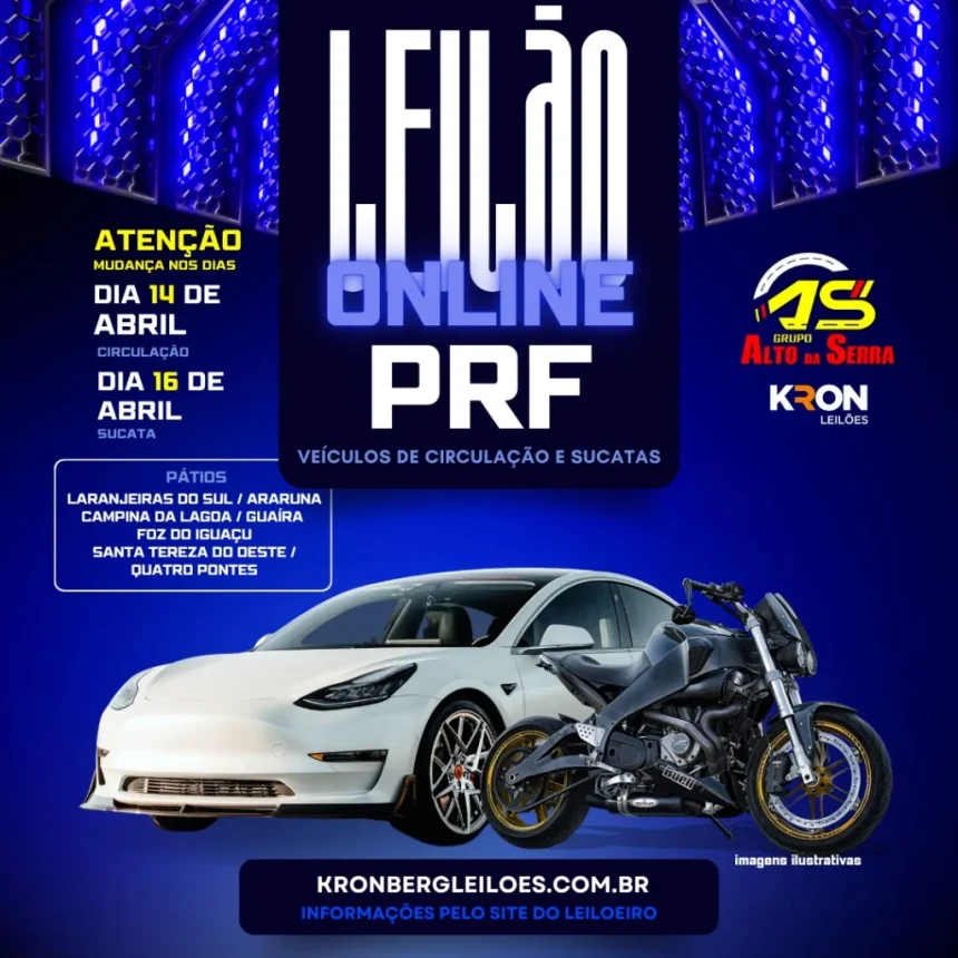 A Polícia Rodoviária Federal (PRF) no Paraná promove um novo leilão online de veículos, com opções para circulação e também sucatas, sendo o critério de venda o maior lance ofertado pelos participantes.