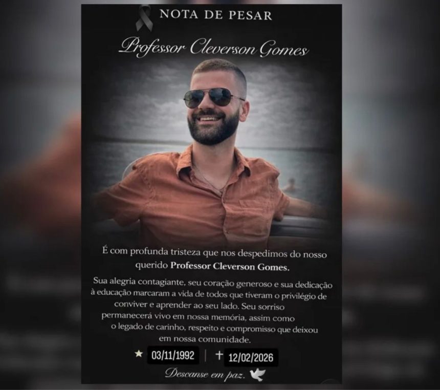 A comunidade de Grandes Rios está de luto com o falecimento do professor Cleverson Gomes, ocorrido nesta quinta-feira, 12 de fevereiro de 2026, aos 33 anos. A notícia causou grande comoção entre familiares, amigos, colegas de trabalho e alunos.