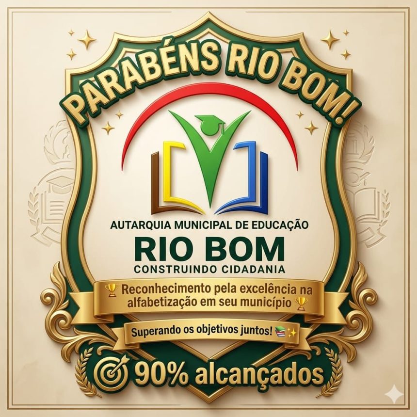 A Prefeitura Municipal de Rio Bom, por meio da Autarquia Municipal de Educação, celebra uma importante conquista na área educacional: o município superou a meta estabelecida pelo Indicador da Criança Alfabetizada, alcançando o índice de 90% de crianças alfabetizadas até o final do 2º ano do ensino fundamental em 2025.